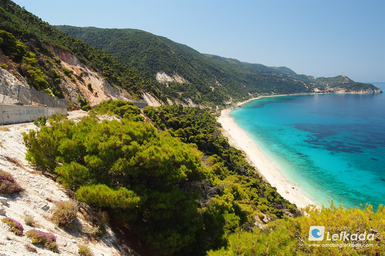 The west part of Lefkada is totally different than the east coast, due to the mountains. The amazing natural scenery with cliffs and valleys do not support the wider roads, so driving in this side is much more complicated. The main road of the west coast starts from Lefkada town, and goes through Tsoukalades, Agios Nikitas, Chortata and Agios Petros villages. In the north part of the road, between Lefkada town and Agios Nikitas it is not complecated and easy to drive, because the asphalt is significantly wider here and has less serpentines. There is one of the best lookouts which you can meet: when the road turns towards the sea after leaving Tsoukalades, the panoramic views to Pefkoulia beach and to the endless Ionian Sea will impress you!