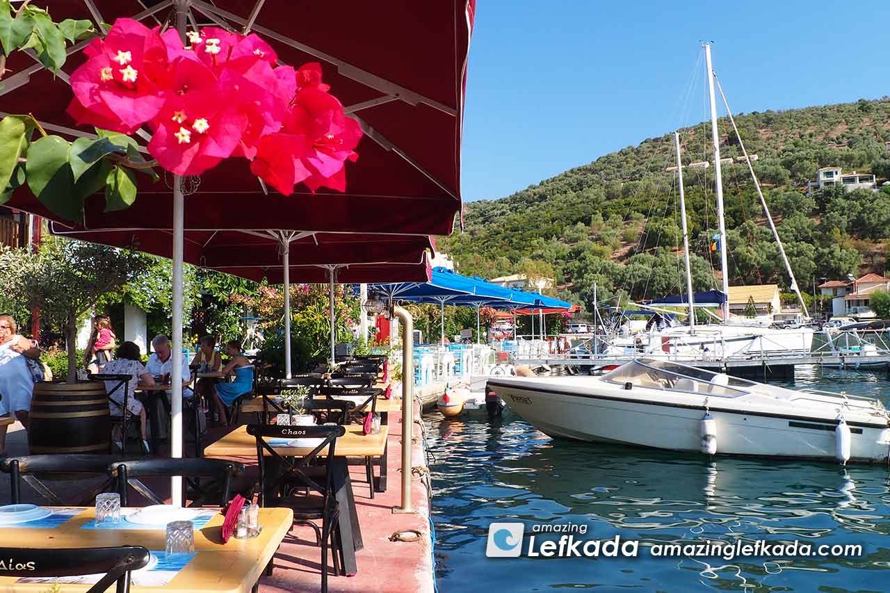 From tables of restaurants pleasant panoramic views are guaranteed to admire the emerald coloured, calm Ionian Sea and to the colourful houses and flowers of the bay.